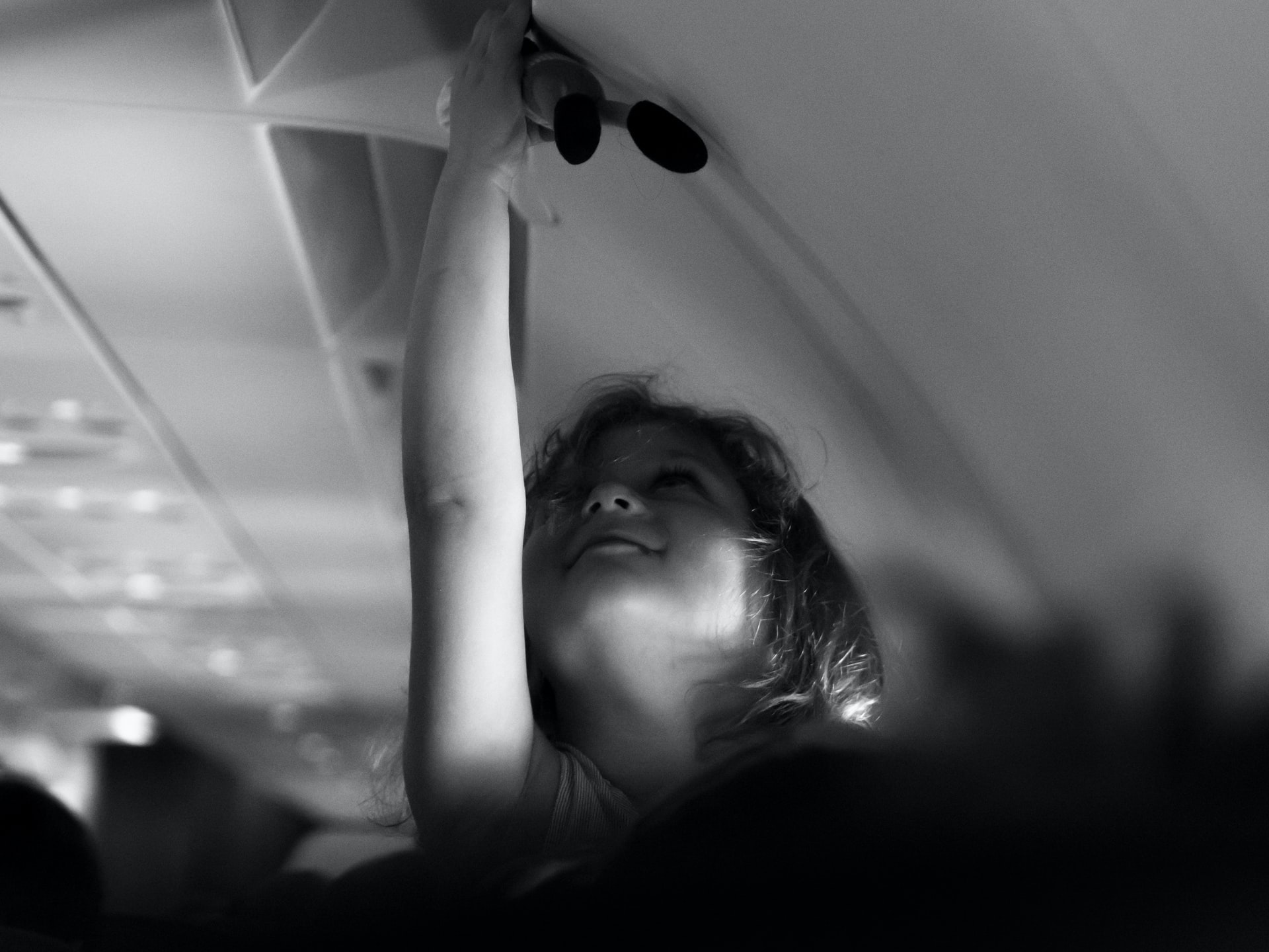 Flying can be hard for adults let alone children. It is kind of a new experience for them, they might feel a little worried. It’s best to stay calm yourself and help your child feel safe. Giving them security is the only way to get them to settle down.